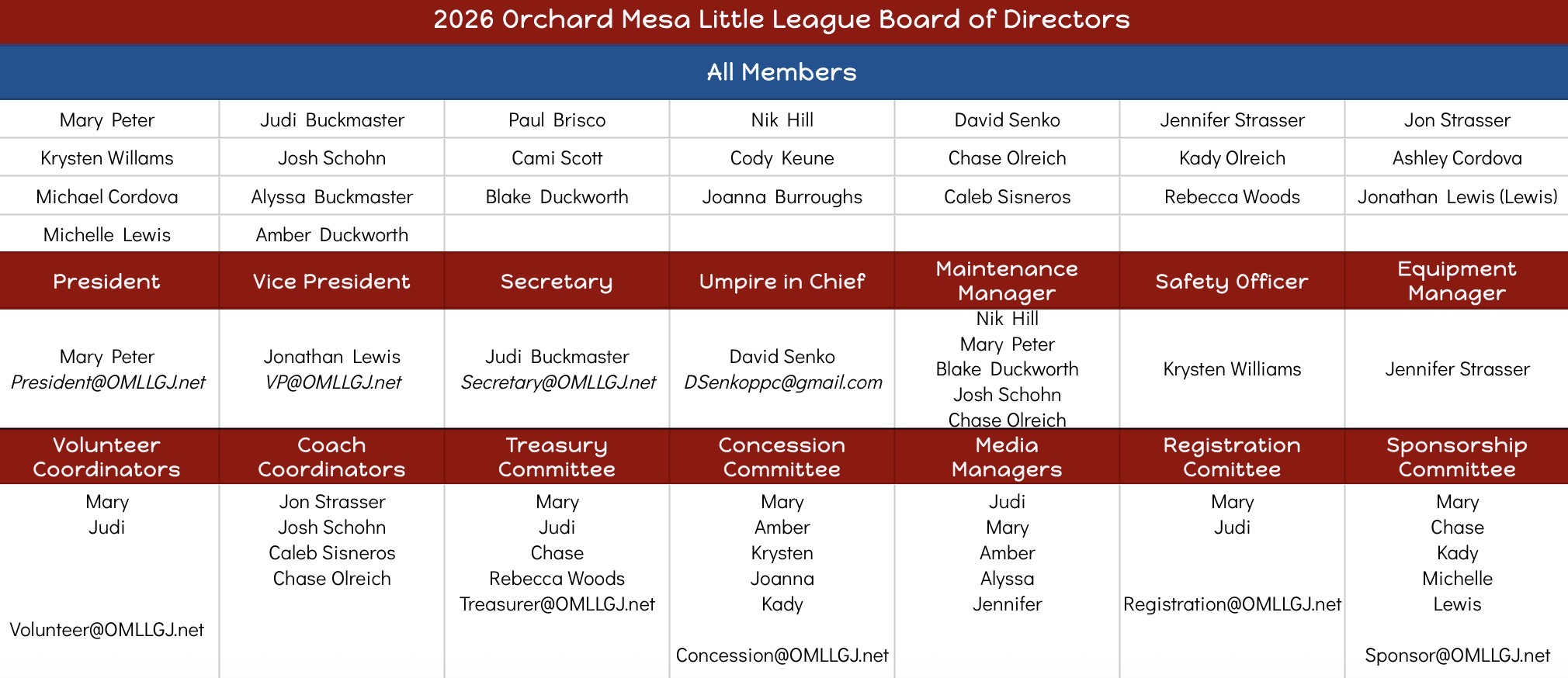 Orchard Mesa Little League PO Box 40906 Grand Junction, Colorado 81504